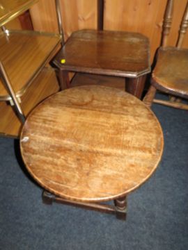 A TRADITIONAL ELM KITCHEN CHAIR, TWO OAK OCCASIONAL TABLES AND A TROLLEY (4)