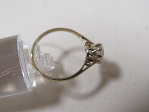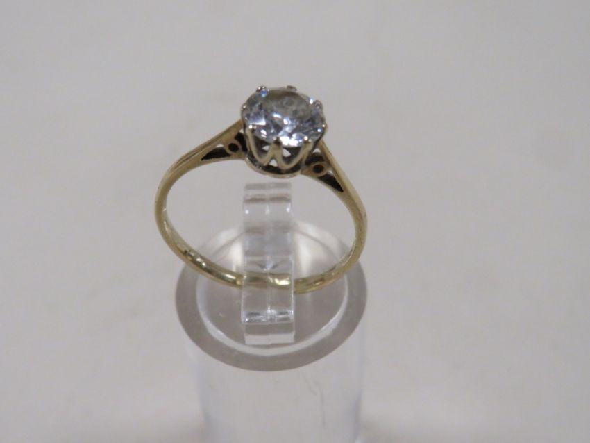 AN UNMARKED YELLOW METAL SOLITAIRE DRESS RING, RING SIZE N