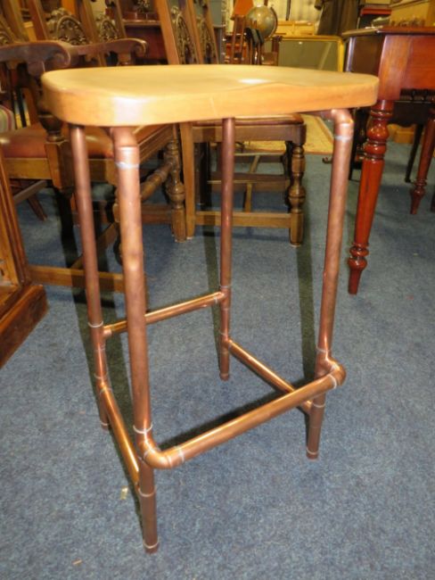 AN INDUSTRIAL STYLE STOOL WITH COPPER EFFECT LEGS