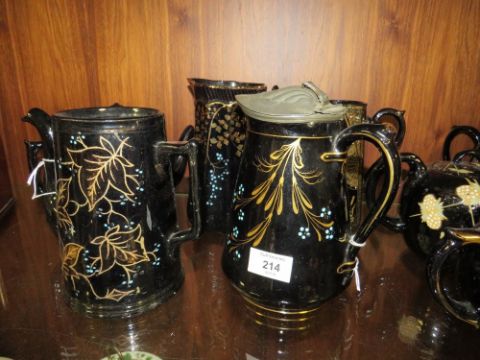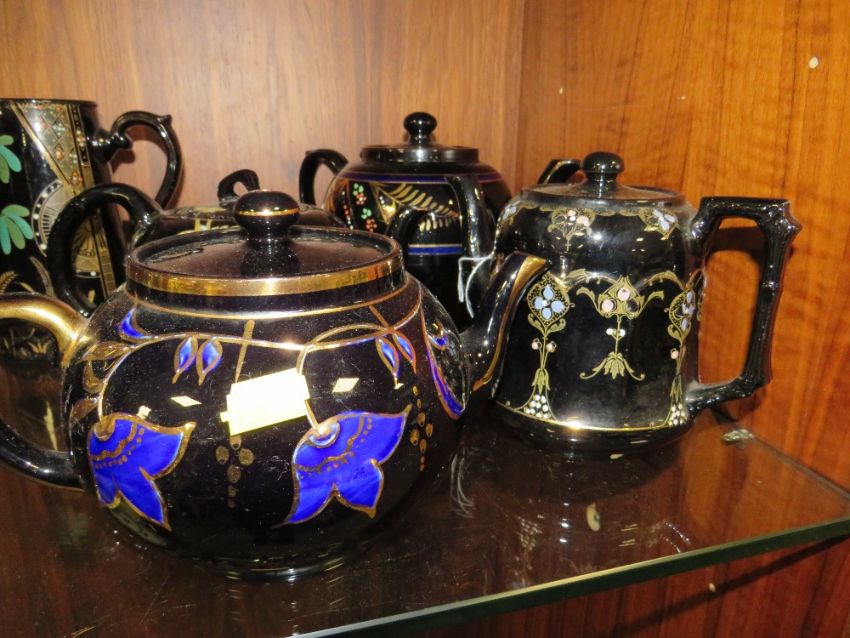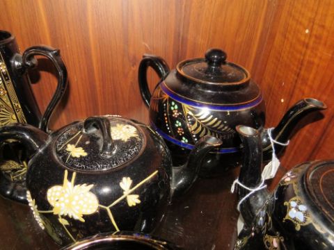 A COLLECTION OF ASSORTED JACKFIELD TYPE JUGS AND TEAPOTS ETC