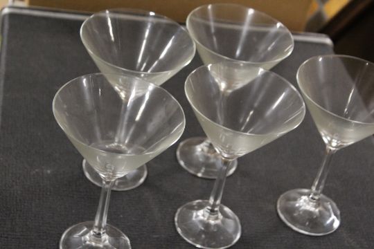 TWO BOXES OF ASSORTED GLASSWARE TO INCLUDE MARTINI GLASSES, COCA COLA, CUT GLASS, BRANDY GLASSES ETC