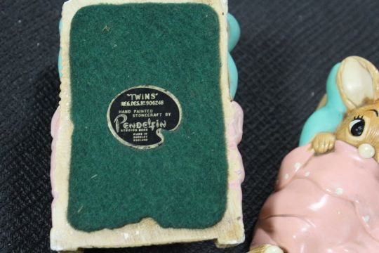 A BOX OF ASSORTED SUNDRIES TO INCLUDE PENDELFIN RABBITS, VINTAGE CUTLERY, COLLECTORS PLATES