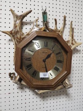 AN ANTLER MOUNTED WALL CLOCK DISPLAY