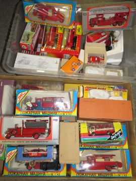 TWO TRAYS OF ASSORTED FIRE ENGINES AND VEHICLES ETC TO INCLUDE RUSSIAN EXAMPLES