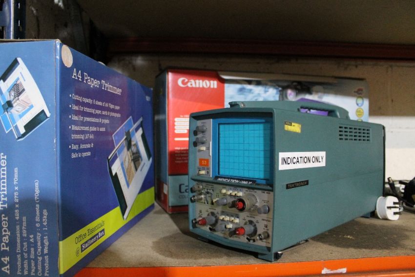 AN A4 PAPER TRIMMER, OSCILLOSCOPE AND SPECTRUM ANALYZER TOGETHER WITH A COLOUR SCANNER