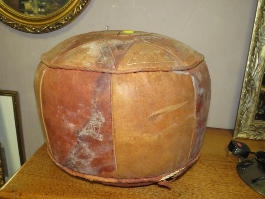 A VINTAGE GILT RECTANGULAR MIRROR, OVAL MIRROR AND EASTERN STOOL (3)