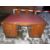 AN ANTIQUE PINE LEATHER TOPPED PARTNERS DESK H-77 W-168 CM