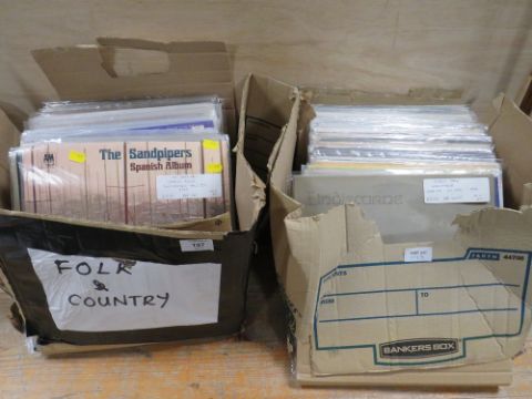 TWO BOXES OF FOLK AND COUNTRY LP RECORDS TO INC TOM PAXTON, PRELUDE, THE GRASS ROOTS ETC