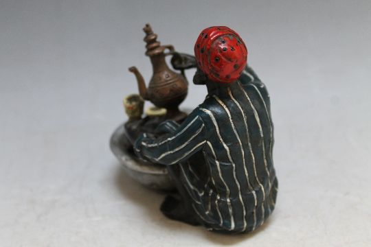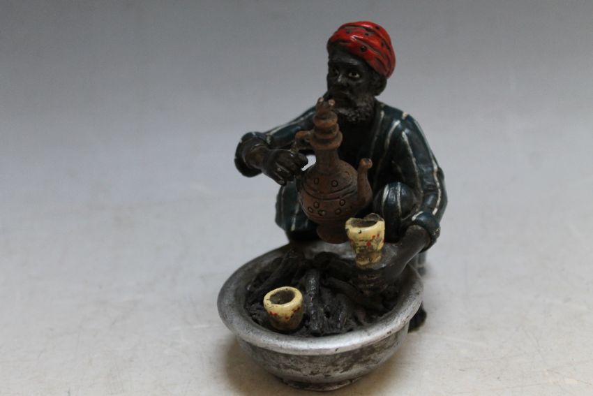A COLD PAINTED BRONZE STUDY OF AN ARAB MAKING COFFEE, H 9.5 cm