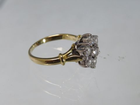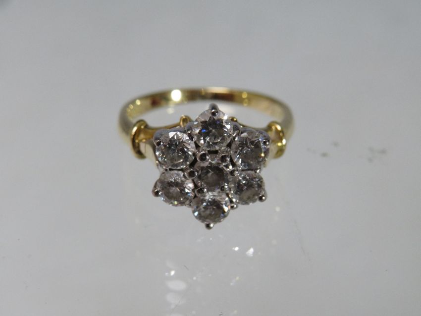A HALLMARKED 18CT GOLD SEVEN STONE DIAMOND RING, set with an estimated 1.6 carats of diamonds, approximate weight 4.7 g