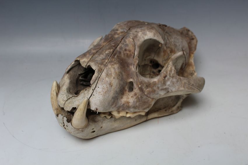 A LION (PANTHERA LEO) SKULL, early/mid 20th century, with some teeth remaining, L 29 cm