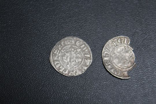 AN EDWARD III LONG CROSS PENNY TOGETHER WITH A DAMAGED EXAMPLE