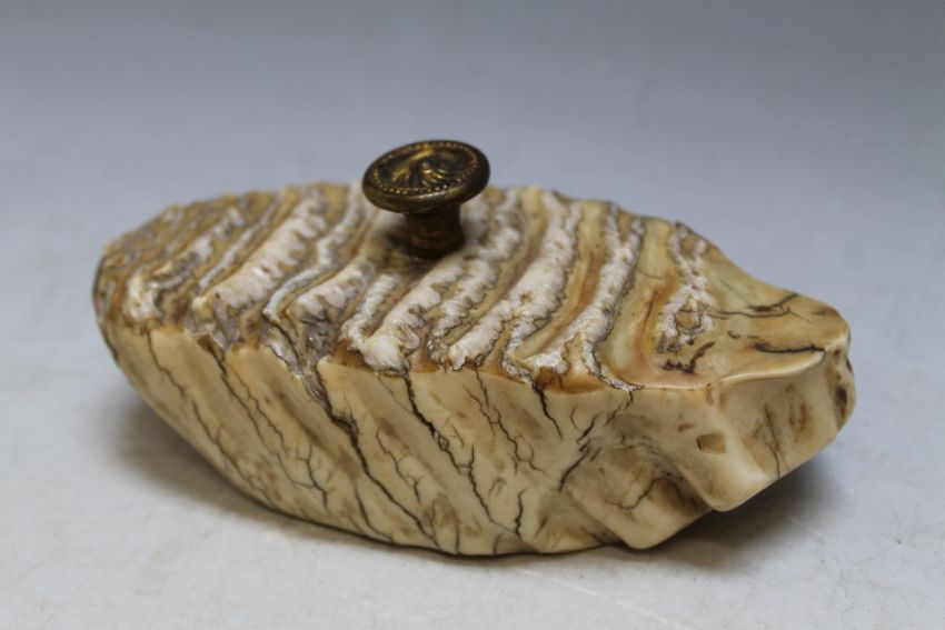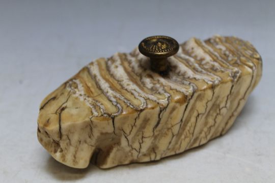 AN ANTIQUE NATURAL HISTORY SPECIMEN PAPERWEIGHT, W 13.5 cm
