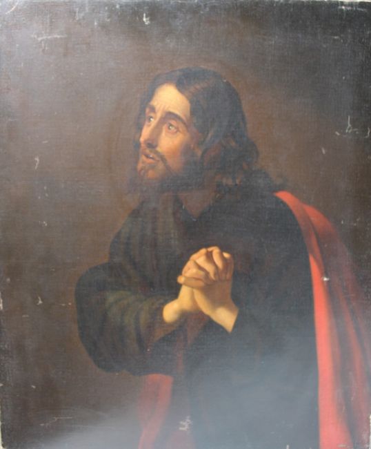 FOLLOWER OF GERRIT VAN HONTHORST (1590-1656). Christ kneeling with hands clasped, oil on canvas, unframed, 76 x 63 cm A/F