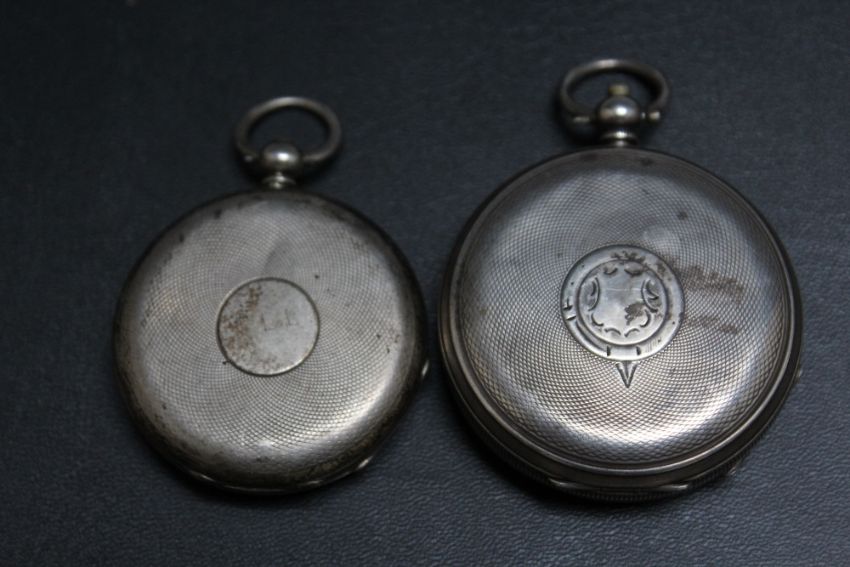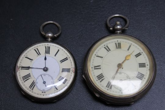 TWO SILVER CASED OPEN FACED POCKET WATCHES, Dia 5 cm
