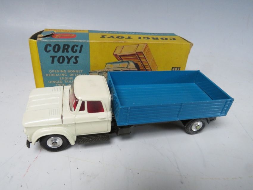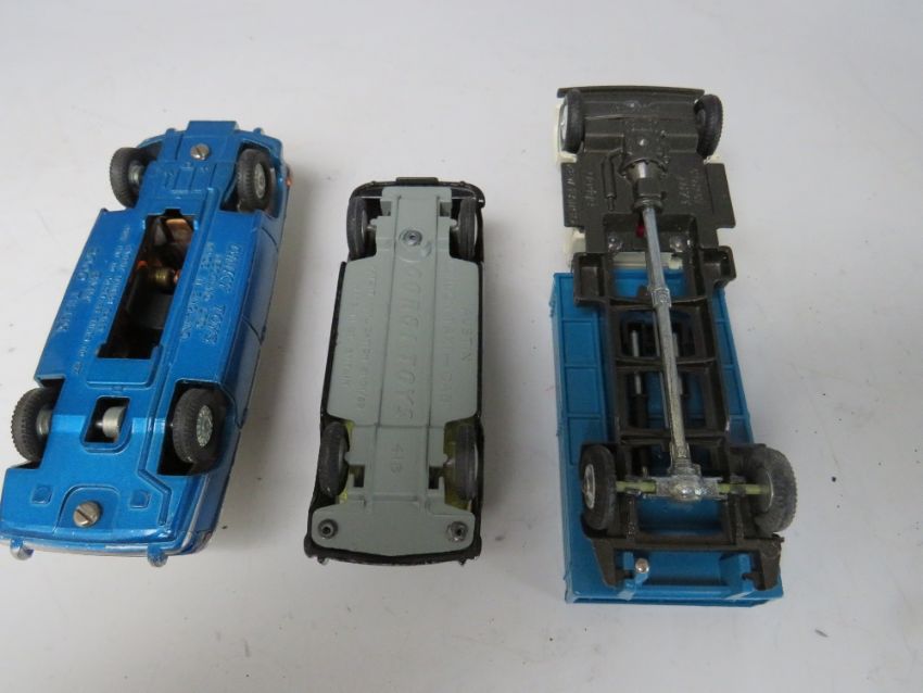 A VINTAGE BOXED DINKY CAR B.M.W. 2000 TILUX, together with two vintage boxed Corgi cars - an Austin taxi and a Dodge Kew Fargo tipper (3)