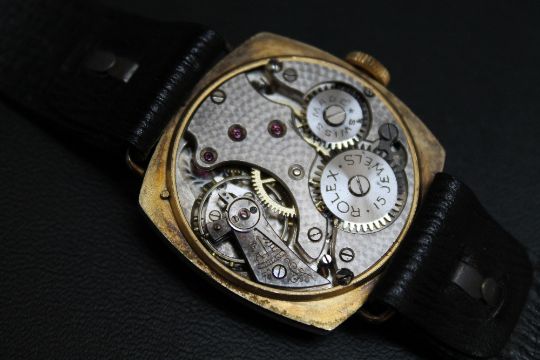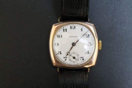 ROLEX - A VINTAGE GENTS HALLMARKED 9 CARAT GOLD WRIST WATCH, Dia 3.25 cm
