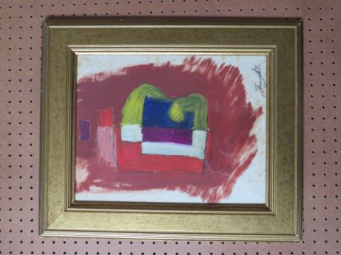 (XX). Abstract composition, indistinctly signed lower right, oil on paper, framed and glazed, 32 x 25 cm
