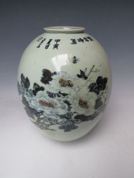 A FLORAL DESIGN ORIENTAL VASE, with character marks to base and just below top rim, H 25.5 cm