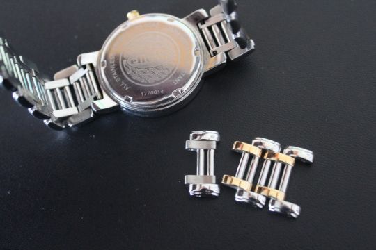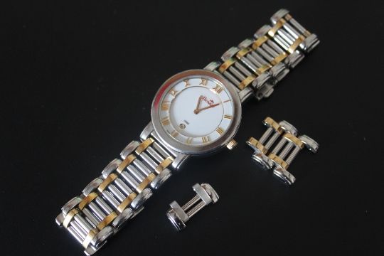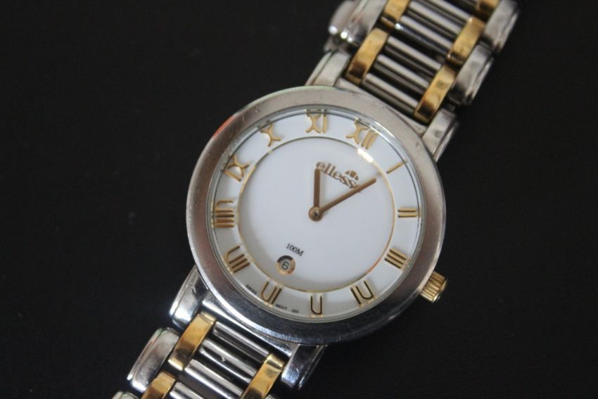 AN ELLESSE 100M DATE WRISTWATCH, on bi-colour bracelet with spare links, Dia 3.5 cm