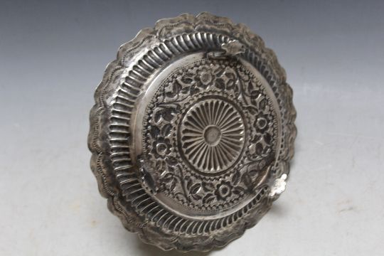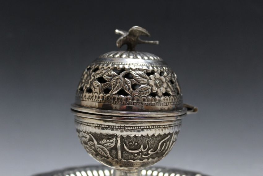 AN ARABIC WHITE METAL OUD CENSOR, with bird finial, H 17 cm