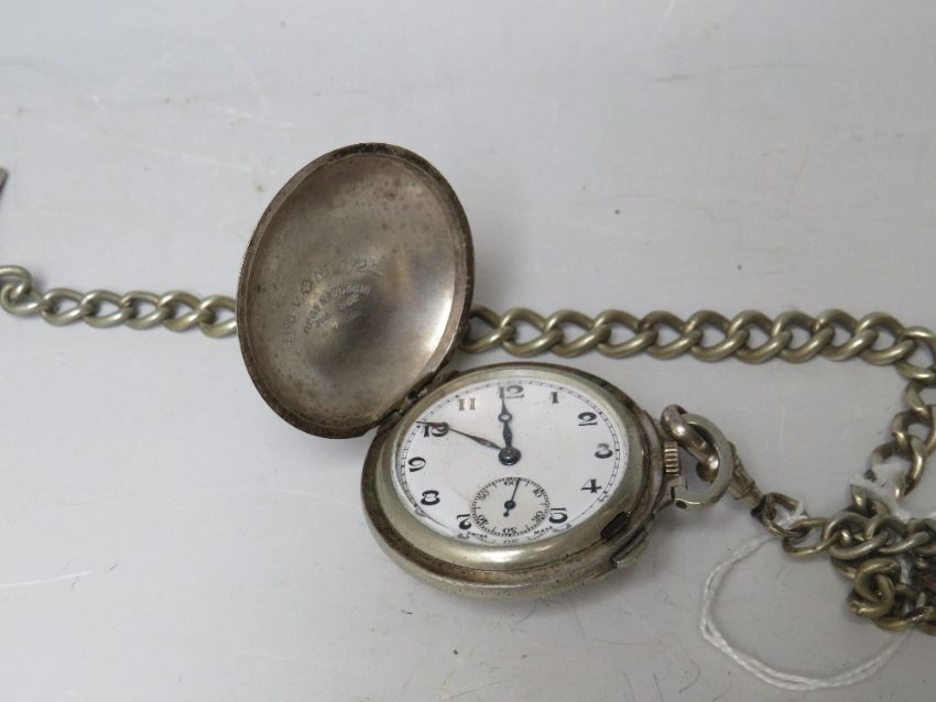 A NOVELTY FULL HUNTER FOB WATCH IN THE STYLE OF A GOLF BALL, on graduating albert chain, Dia 3.5 cm