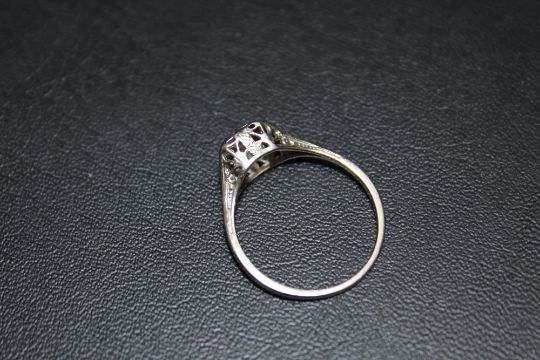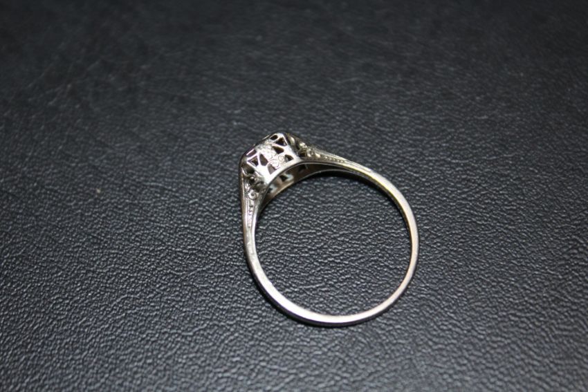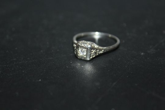 AN ILLUSION SET DIAMOND SOLITAIRE RING, in white metal stamped 18k, approx weight 2.1g, ring size P