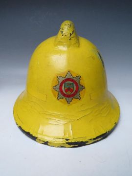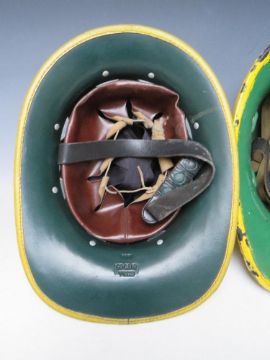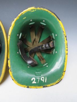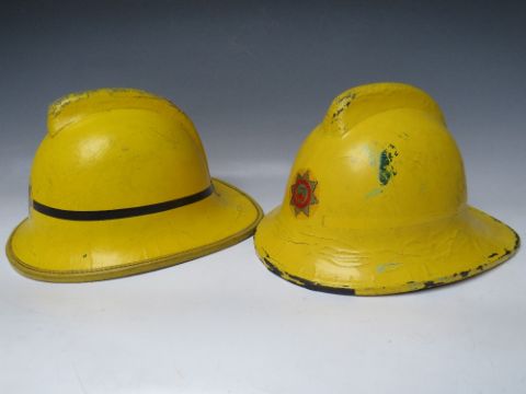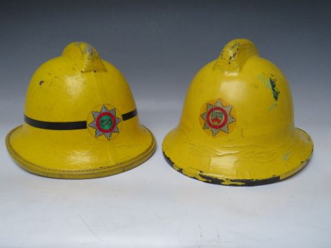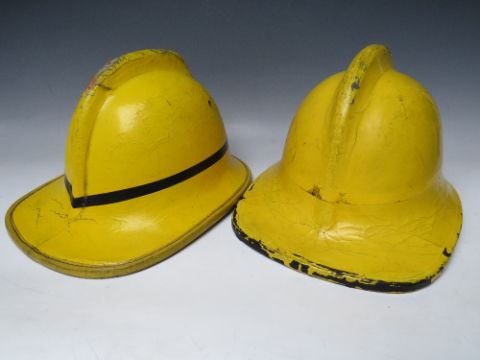 TWO STAFFORDSHIRE CORK BASE FIRE HELMETS, small size dated 1976 and 1985