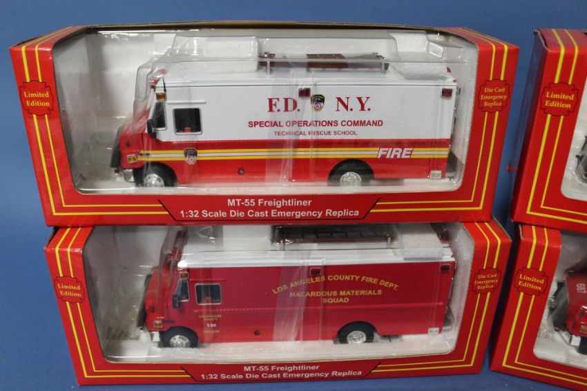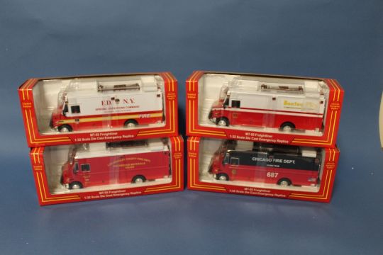 FOUR BOXED CODE 3 COLLECTABLES MTSS FREIGHTLINERS, Chicago, Los Angeles, Boston and New York, all 1:32 scale