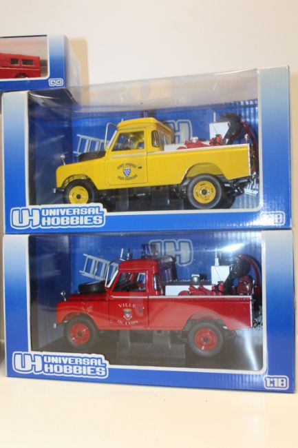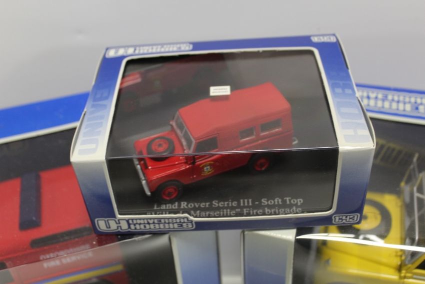 A COLLECTION OF UNIVERSAL HOBBIES DIE CAST LAND ROVER FIRE VEHICLES, mainly 1:18 scale
