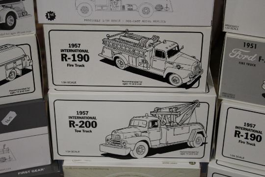 FOURTEEN BOXED FIRST GEAR FIRE ENGINES AND FIRE RELATED VEHICLES, 1:30 and 1:34 scales