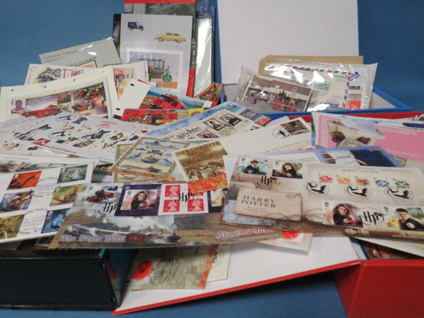FOUR FOLDERS CONTAINING FIRST DAY COVERS / LOOSE STAMPS, plus Collectors Vehicles catalogues