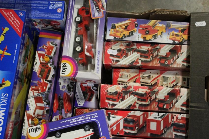 TWENTY EIGHT BOXED VEHICLES BY SIKU, mainly fire related, mainly 1:55 scale (2 trays)