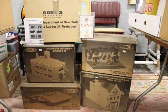 FIVE BOXED CODE 3 COLLECTIBLES FIRE HOUSES, Chicago, New York x 2 etc.