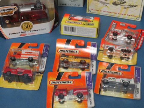 TWELVE BOXED MATCHBOX VEHICLES - MAINLY FIRE ENGINES, plus seven carded Matchbox fire engines