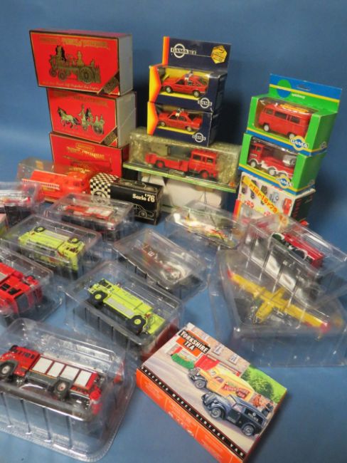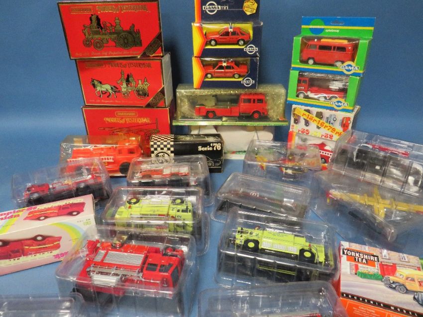 THREE BOXED MATCHBOX SPECIAL EDITION FIRE ENGINES, 1905 Busch, 1880 Merryweather Greenwich, 1936 Leyland Cub together with twenty three mixed make fire related models by Rio, Gama etc.