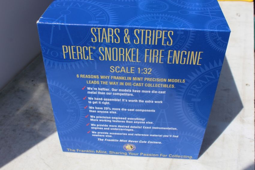 THE FRANKLIN MINT PRECISION MODELS, a boxed Stars and Stripes Pierce Snorkel fire engine, scale 1:32 die cast model fire engine, appears unopened