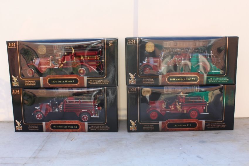 FOUR ROAD SIGNATURE SERIES 1920s, 1930s MODEL FIRE ENGINES, 1:24 scale die cast models (4)