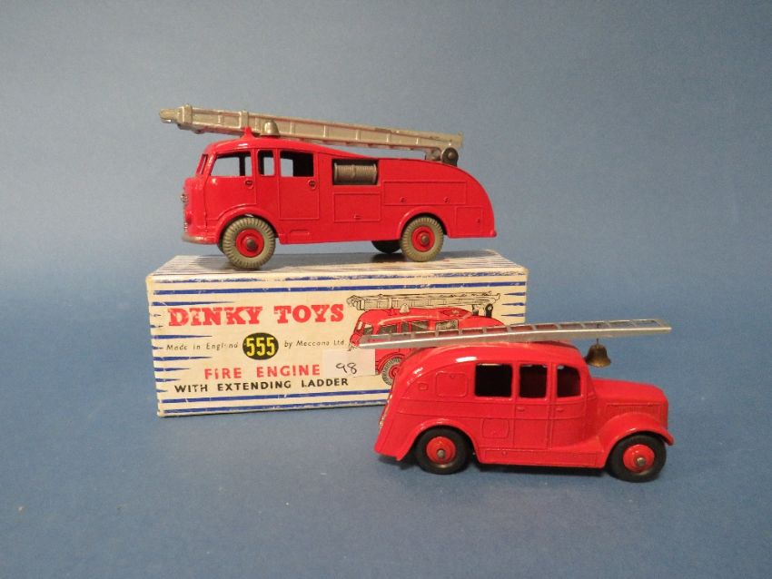 A BOXED VINTAGE DINKY 555 FIRE ENGINE WITH EXTENDING LADDER, together with an unboxed Dinky 250 fire engine