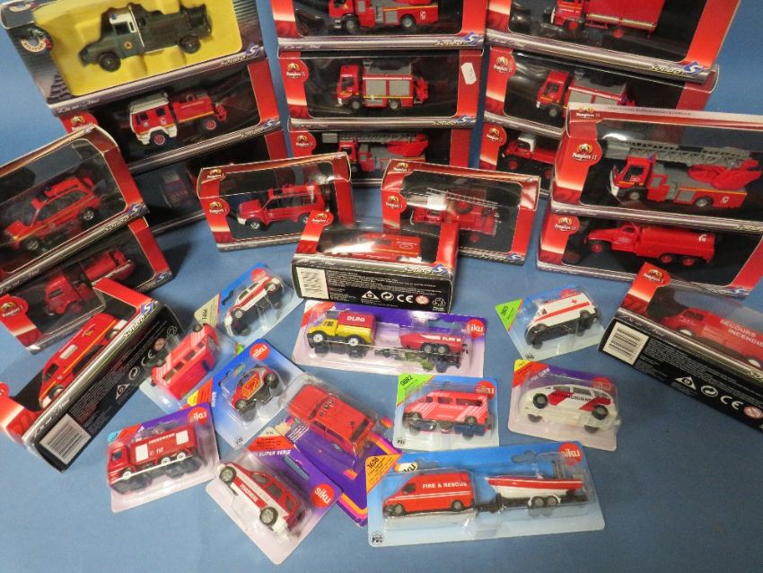 TWENTY BOXED SOLIDO EMERGENCY SERVICES VEHICLES, together with eleven carded Siku mainly emergency services vehicles