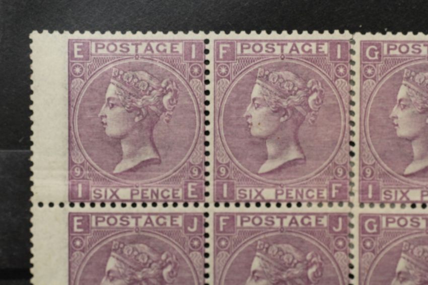 S.G.109 1867 6d MAUVE, plate 9, a fine mint block of eight, with marginal 'POSTAGE SIX PENCE' inscription