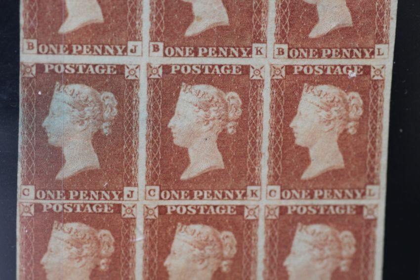 1841 1d RED, a superb mint (appears unmounted), block of nine