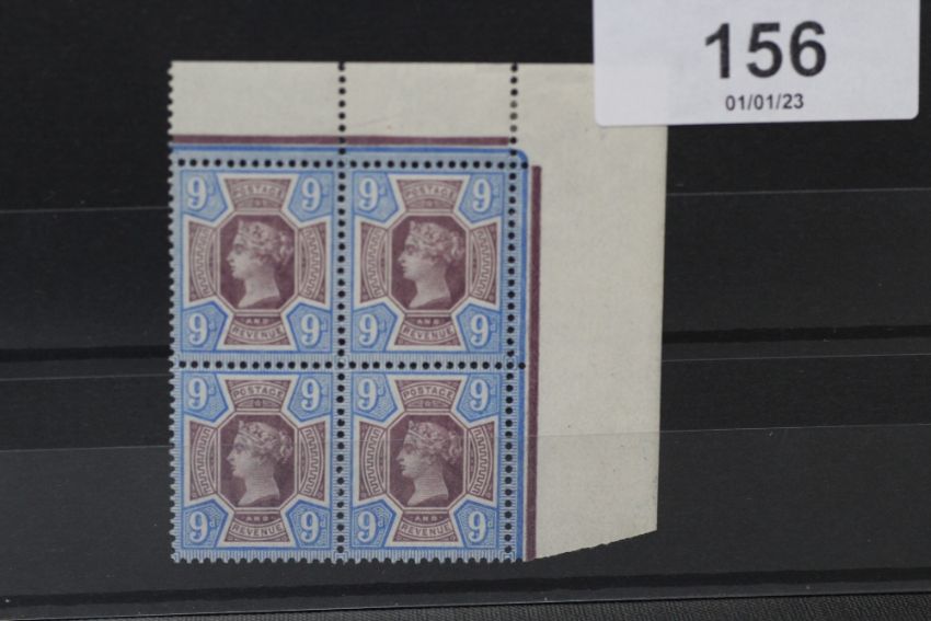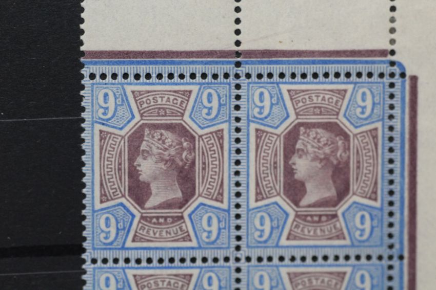 S.G. 209 1887 9d JUBILEE, an UN/M top corner marginal block of four