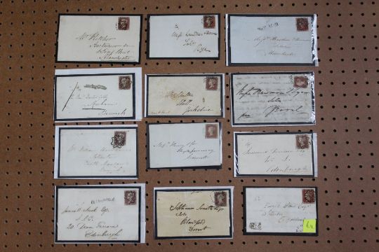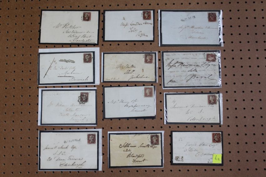 12 x 1d RED IMPERF COVERS / ENTIRES, mainly fine, various Maltese Cross cancels and directional markings