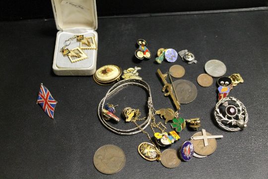 A SMALL QUANTITY OF VINTAGE BROOCHES, BADGES ETC