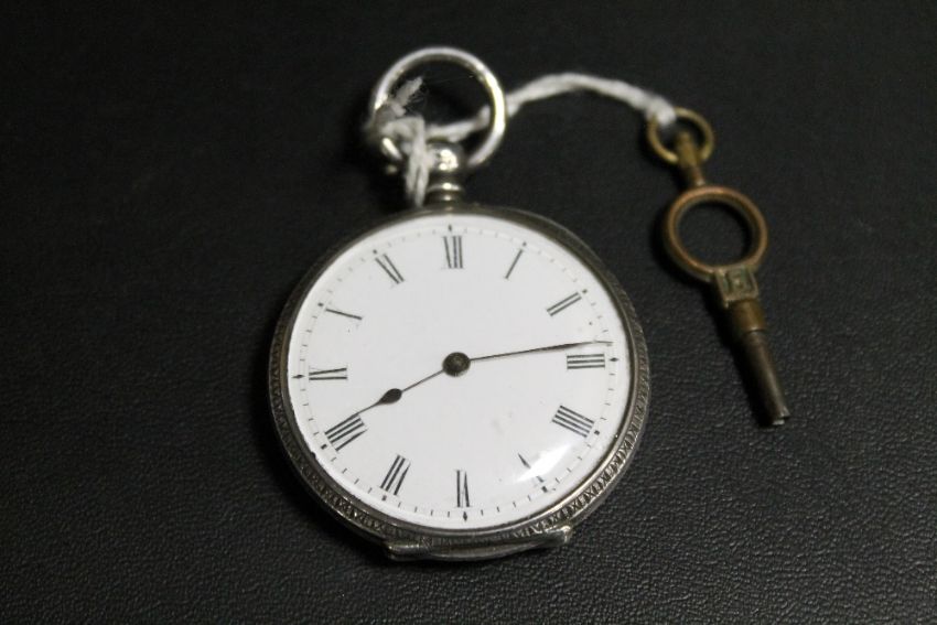 A VICTORIAN KEY WIND POCKET WATCH IN SILVER CASE