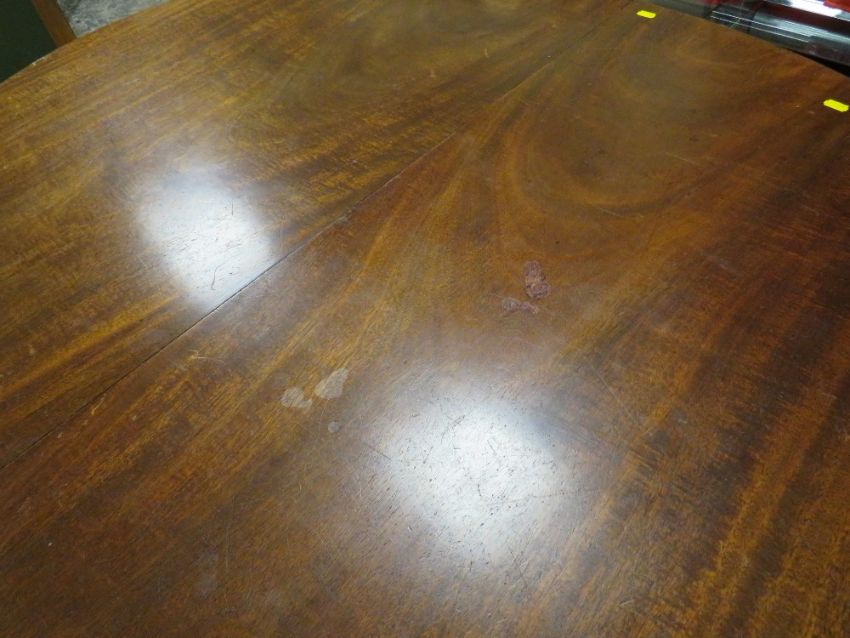 AN EARLY 20TH CENTURY MAHOGANY WIND-OUT DINING TABLE WITH ONE SPARE LEAF L-135 CM EXTENDED 181 CM