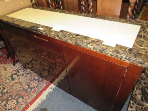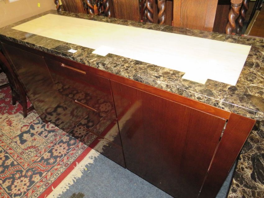 A HEAVY COLOURED MARBLE SIDEBOARD H-80 CM W-140 CM