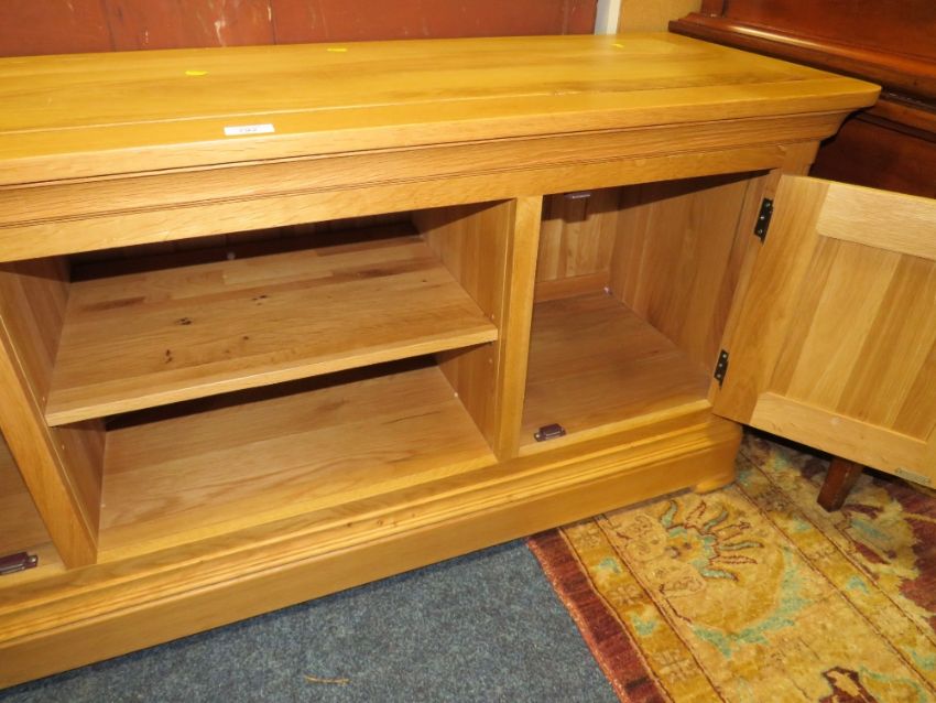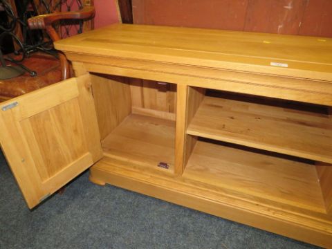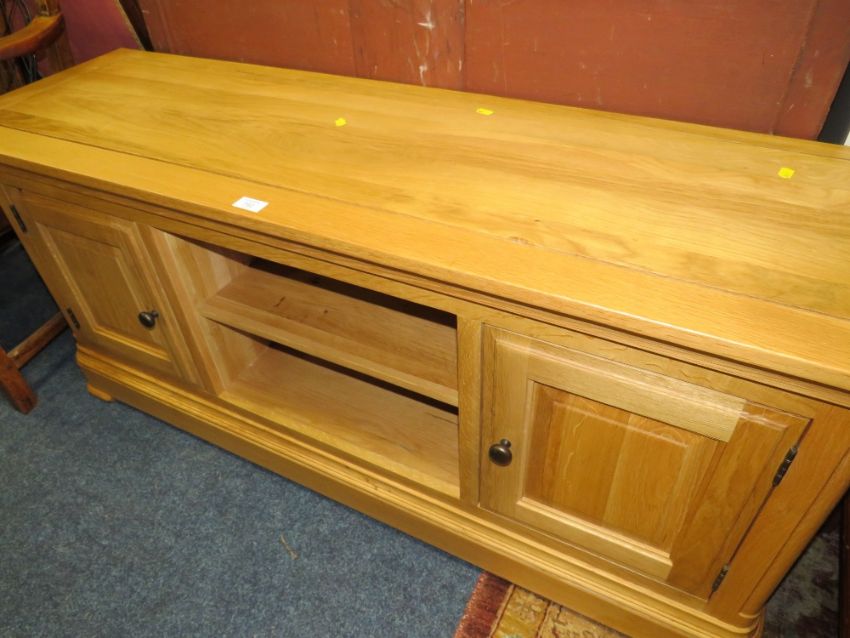 A MODERN LIGHT OAK MEDIA CABINET W-140 CM