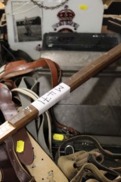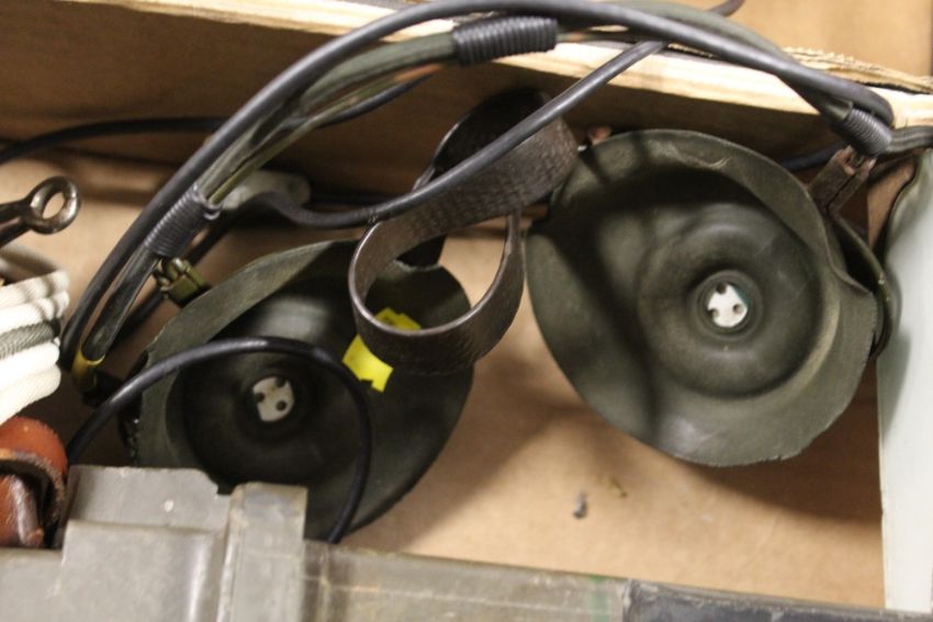 A TRAY OF ASSORTED MILITARY ITEMS TO INC A SAM BROWNE BELT, TANK PERISCOPE AND VARIOUS OTHER ITEMS